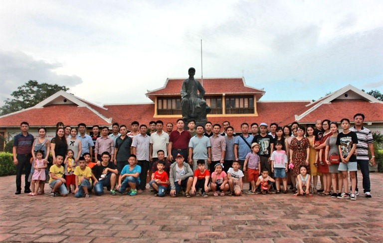 Đoàn tham quan và chụp hình lưu niệm tại làng Sen quê Bác, xã Kim Liên, Nam Đàn, Nghệ An