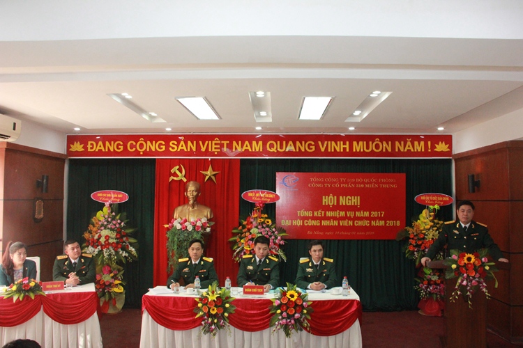 Thực hiện theo Kế hoạch của Tổng công ty, ngày 18/01/2018, Công ty Cổ phần 319 Miền Trung đã tổ chức Hội nghị tổng kết nhiệm vụ năm 2017, Đại hội Công nhân Viên chức năm 2018. Dự Hội nghị có các đồng chí trong Đảng ủy, Hội đồng Quản trị, Ban Giám đốc cùng toàn thể cán bộ, công nhân viên trong đơn vị.