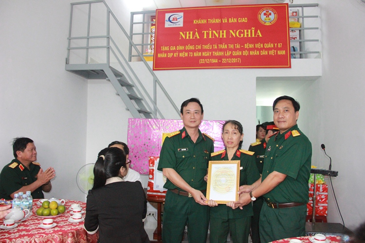 On January 22, 2018, Joint Stock Company 319 Mien Trung co-operated with Military Hospital 87 / General Department of Logistics to inaugurate and hand over the Gratitude House to Comrade Thieu Tran Thi Tai, born in 1962. - Nurses of the Military Medical Hospital 87 / TCHC, the offspring of the martyrs who sacrificed in the war against the American salvation, in extremely difficult circumstances, for many years have to live in a narrow house, temporary Weak, seriously degraded, very dangerous when the rainy season comes, not guaranteed to live. With the interest, the support, the support of the Joint Stock Company 319 Central with the amount of 70 million and additional contributions of families, units, comrades have acquired a solid new house. , spacious, clean and beautiful, ensuring the life and convenience of living, so that comrades can be assured of work, continue to devote the capacity, ethics to serve and treat the staff, Soldier in the Army.