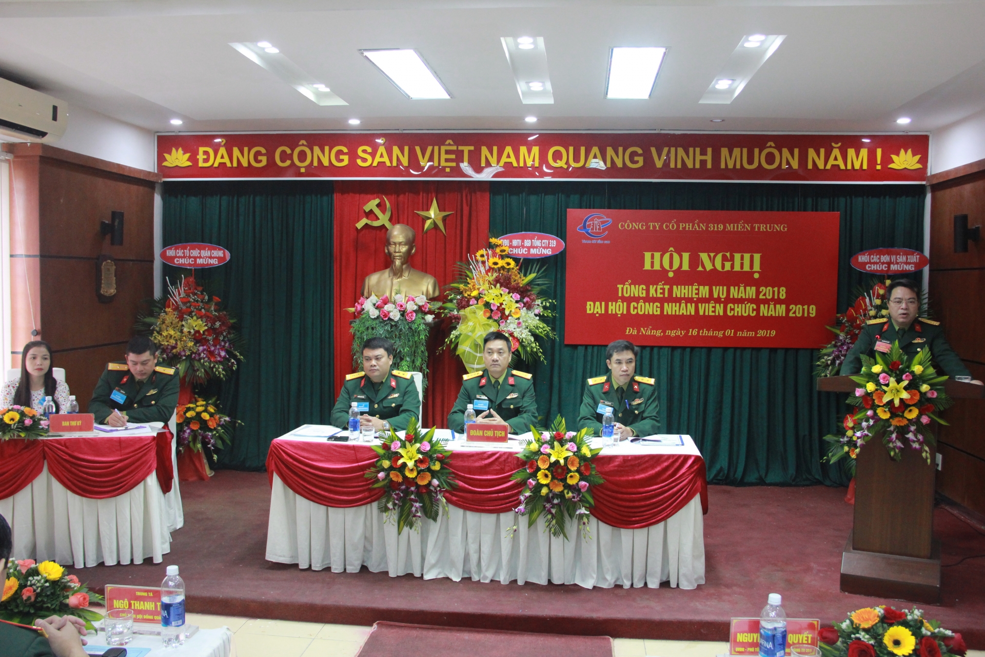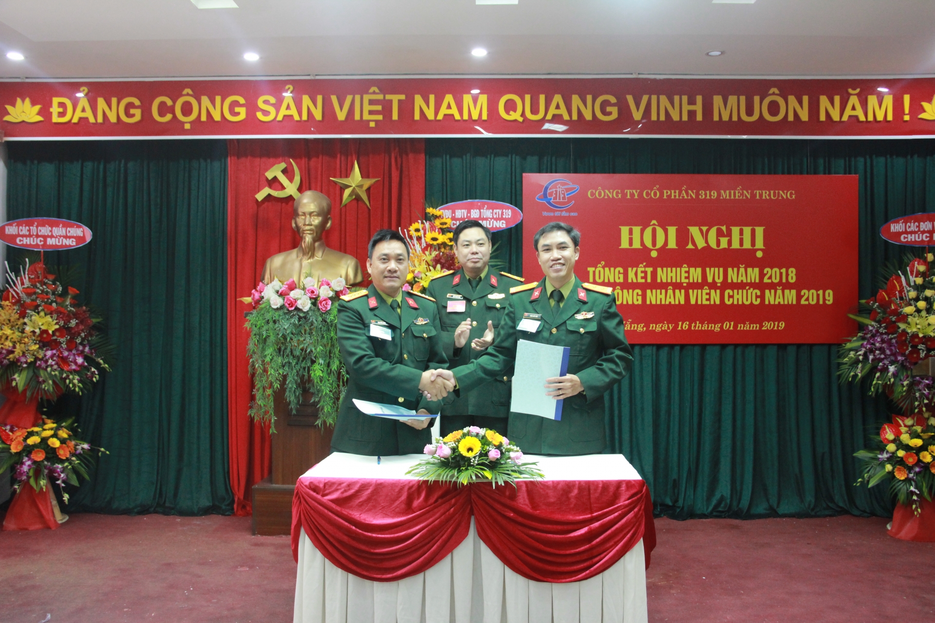 Trong hai ngày 15 và 16/01/2019, Công ty Cổ phần 319 Miền Trung đã tổ chức Hội nghị Đảng ủy phiên cuối năm và Hội nghị tổng kết nhiệm vụ năm 2018, Đại hội công nhân viên chức năm 2019 nhằm đánh giá kết quả thực hiện nhiệm vụ trên tất cả các mặt công tác của đơn vị, trên cơ sở đó đề ra phương hướng, chỉ tiêu, giải pháp thực hiện thắng lợi nhiệm vụ sản xuất kinh doanh và xây dựng đơn vị trong thời gian tới.