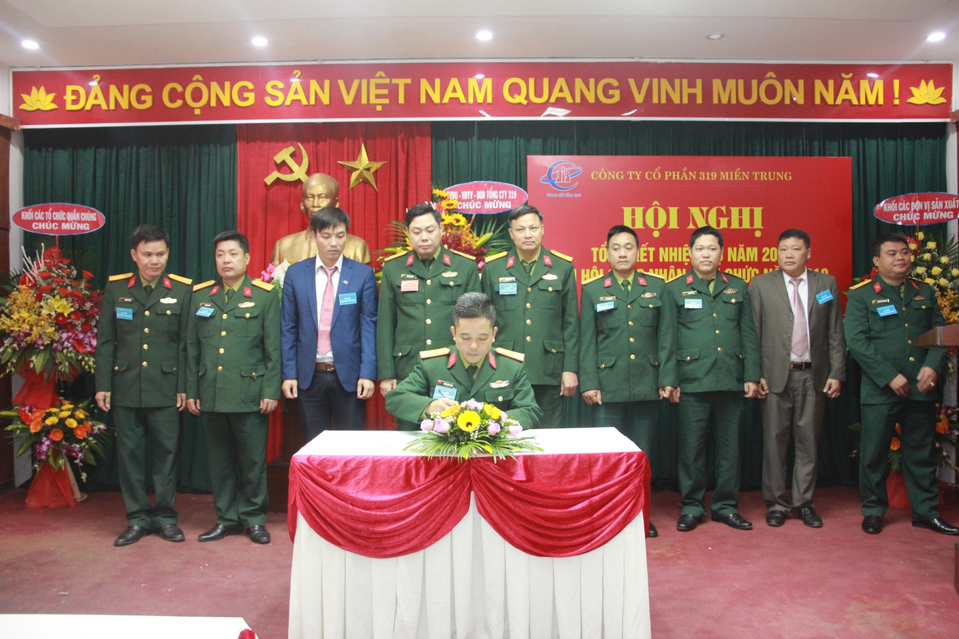 Dự và chỉ đạo Hội nghị có đồng chí Đại tá Nguyễn Văn Quyết - Phó Tổng Giám đốc Tổng công ty, đại diện các cơ quan chức năng Tổng công ty và Lãnh đạo, Chỉ huy cùng toàn thể cán bộ, công nhân viên Công ty Cổ phần 319 Miền Trung.