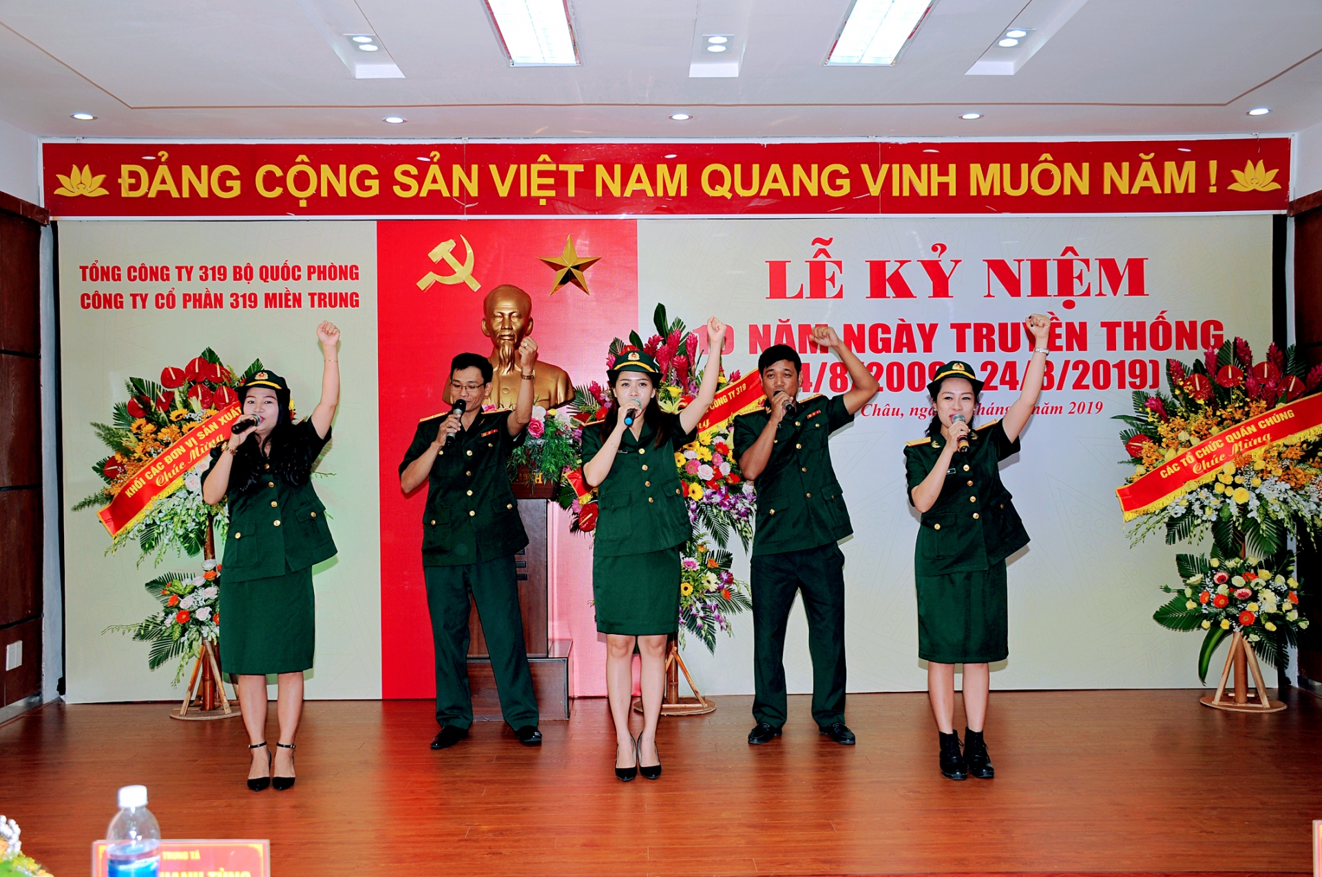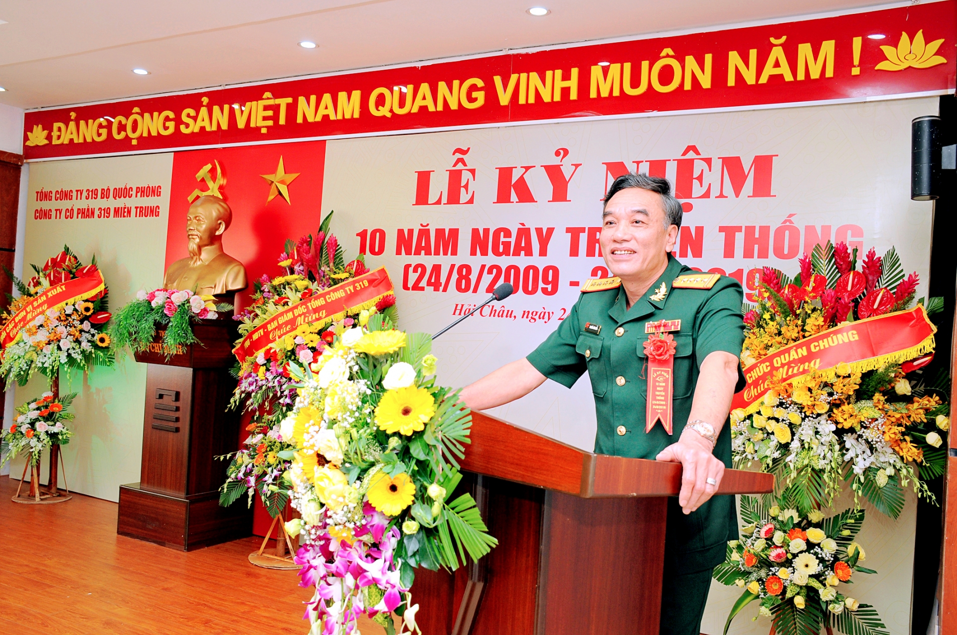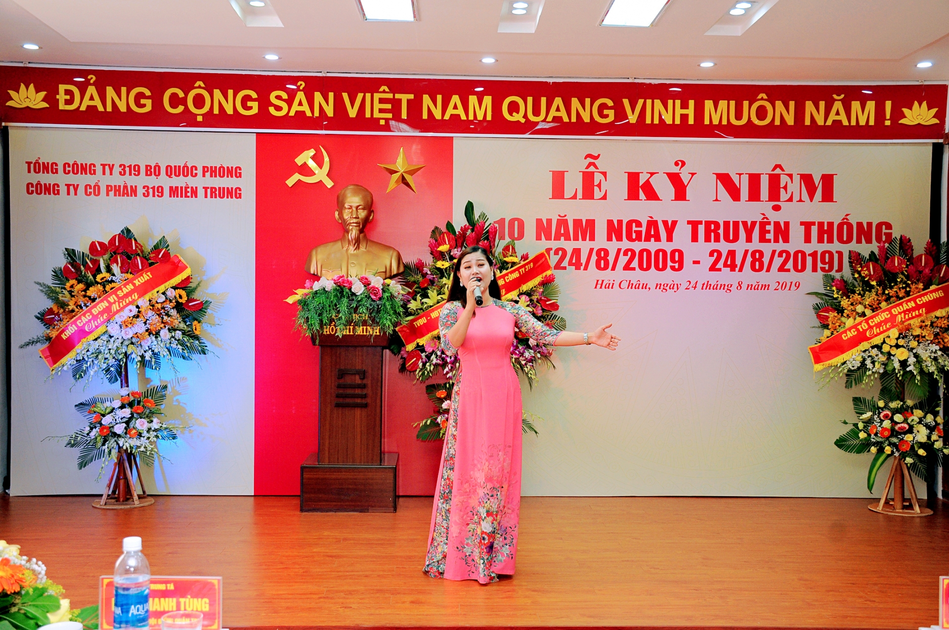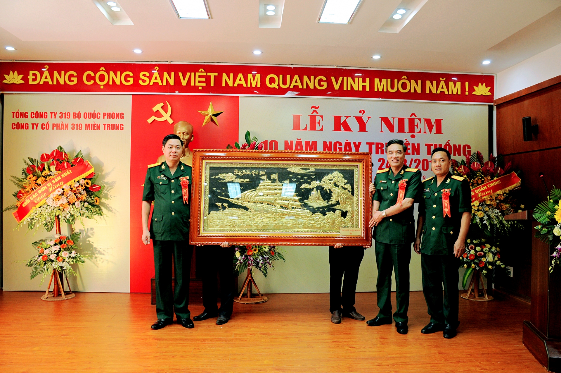 Ngày 24/8/2019, Công ty Cổ phần 319 Miền Trung/Tổng công ty 319 Bộ Quốc phòng đã long trọng tổ chức lễ kỷ niệm 10 năm ngày Truyền thống Công ty. Tham dự buổi Lễ, có đồng chí Đại tá Nguyễn Văn Xiển - Phó Bí thư Đảng ủy - Tổng Giám đốc Tổng công ty, các đồng chí trong Thường vụ Đảng ủy, Hội đồng thành viên, Ban Giám đốc, đại diện các phòng ban cơ quan Tổng công ty. Các đồng chí nguyên là Lãnh đạo, Chỉ huy Công ty. Các đại biểu đơn vị bạn, đối tác, khách hàng. Về phía Công ty Cổ phần 319 Miền Trung, có các đồng chí trong Đảng ủy, Hội đồng Quản trị, Ban Giám đốc cùng toàn thể cán bộ, công nhân viên, người lao động tham dự.